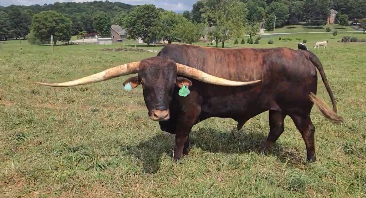 A carbon copy of his famous sire yet better and earlier. Horns measuring 81" at 37 months. He is out pacing Ranger as a 3 year old. Cow power galore! He is checking all the boxes so far to be a PRODUCER!
