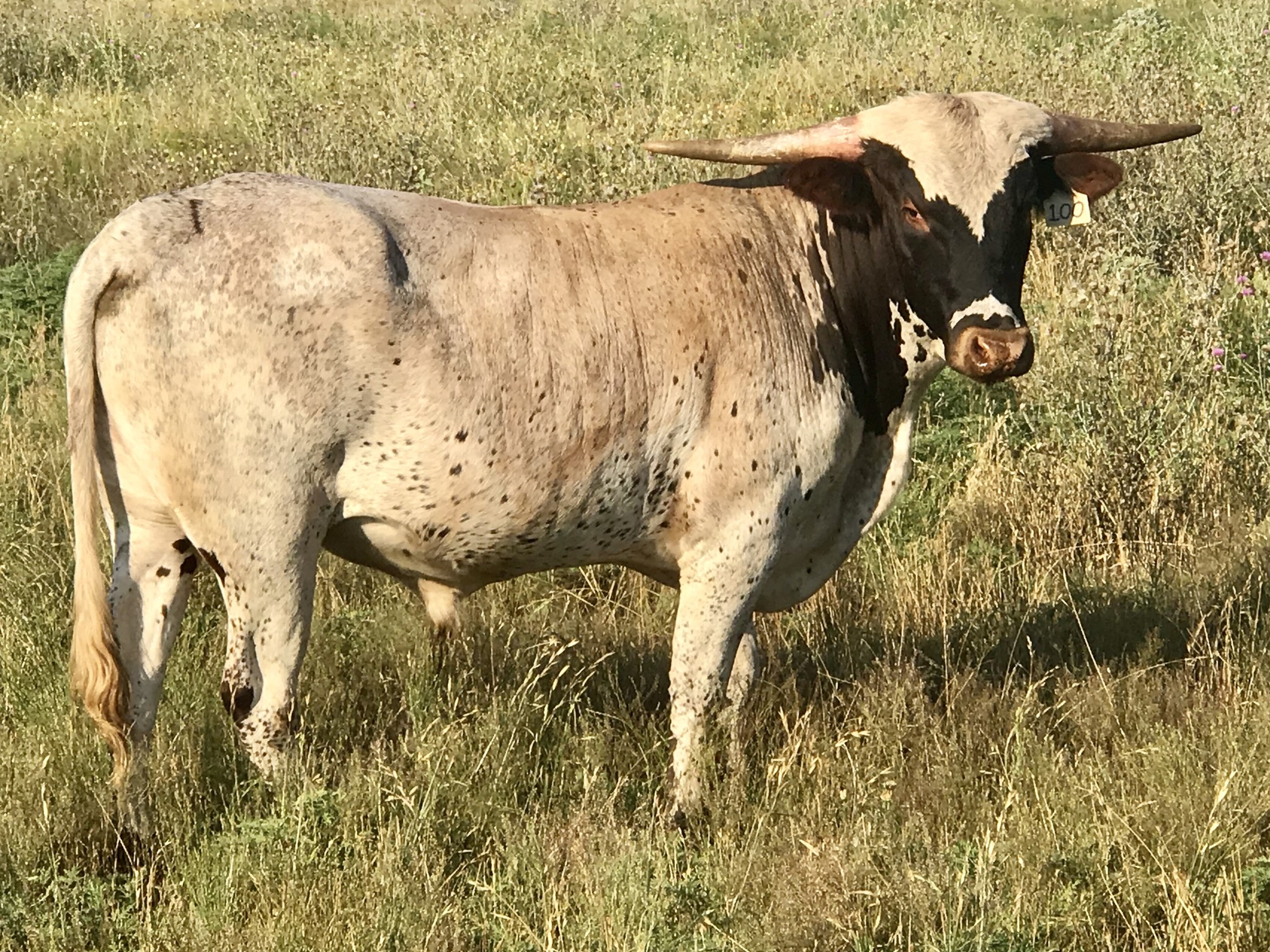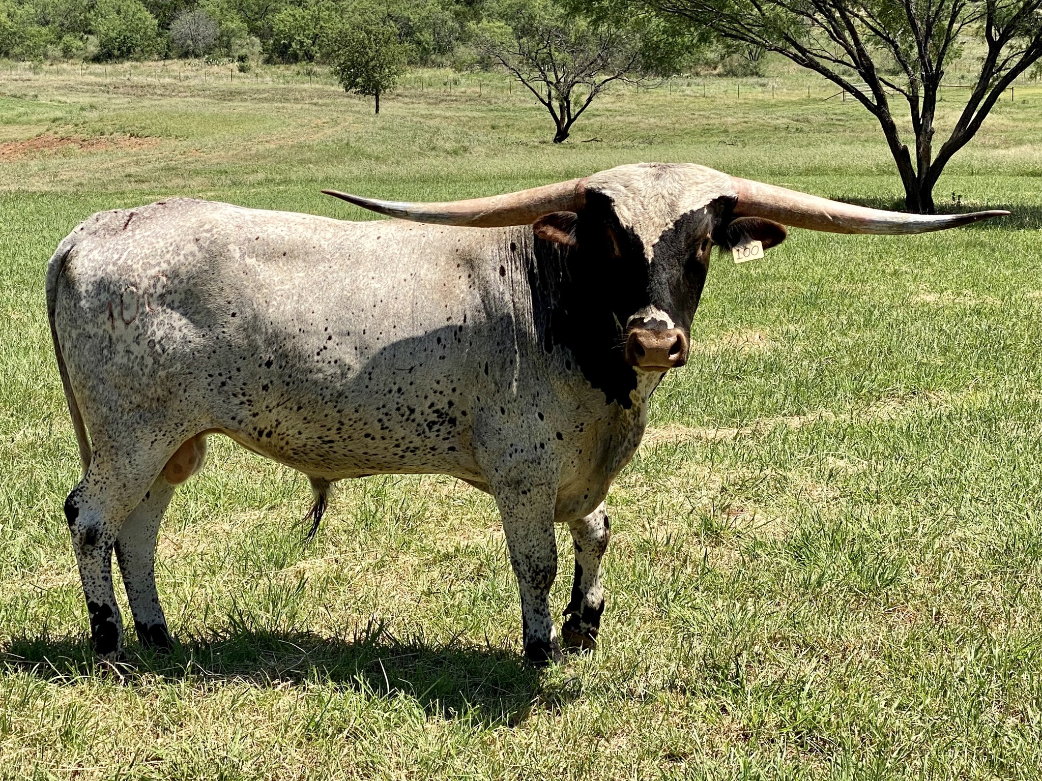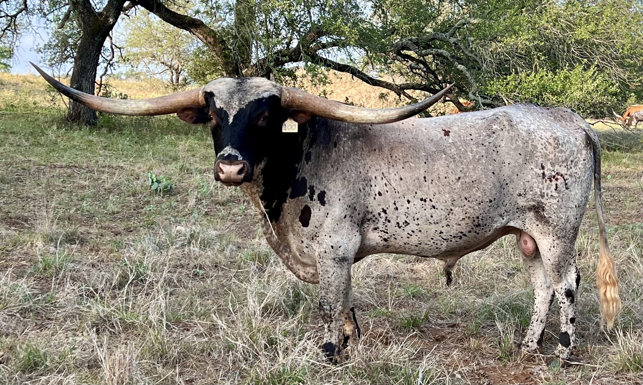 The first/only bull out of Guinness World record >110" 3S Danica - what more needs to be said? Danica's dam 3S Touchdown Tari is >100” herself! The maternal pedigree of this bull is one of a kind, including Century’s grand-dam Flash of Bonai whose 92" really adds twist to his offspring. The LM herd sire is an excellent outcross to any longhorn herd.